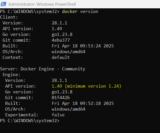 Running Docker Engine v28.1.1 provides a stable and predictable environment: